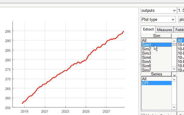 From this perspective, we can say that in 75% of the simulations, CPI exceeded 285 by 2027. If we want to be more specific, we can say that in 50% of the simulations, CPI was within 2.5 of the average (so somewhere between 285 and 290). This is an extremely helpful feature, allowing us to understand our forecasts and the probability of their occurrence (assuming the validity of our model).
